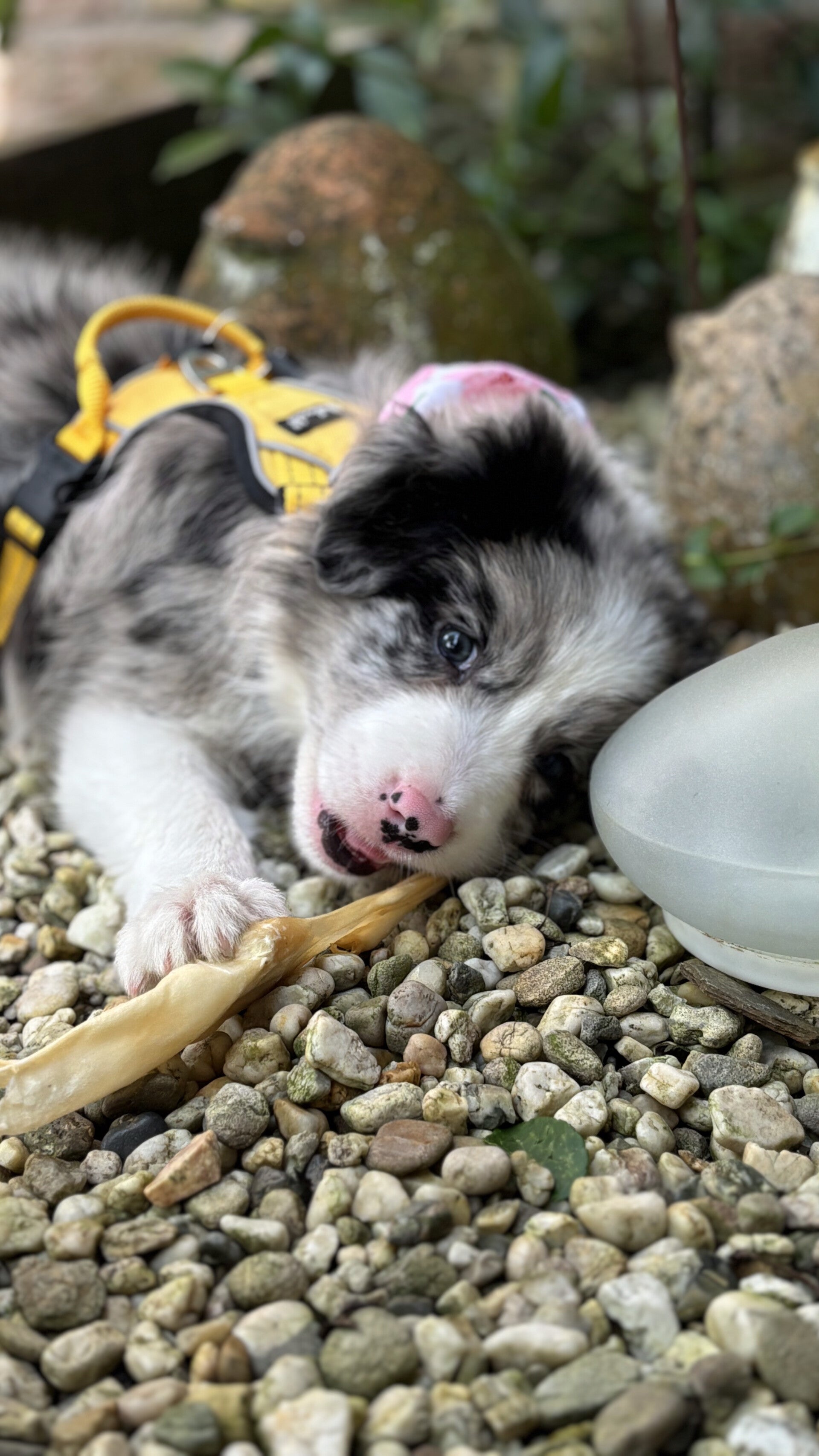 Alles draait ineens om haar: wandelen, eten, spelen, slapen… en tussendoor probeer ik nog een beetje structuur te vinden en zelf wat bij te slapen. Truij heeft energie voor tien, maar tegelijk dat slimme koppie dat steeds kijkt: “En nu?”