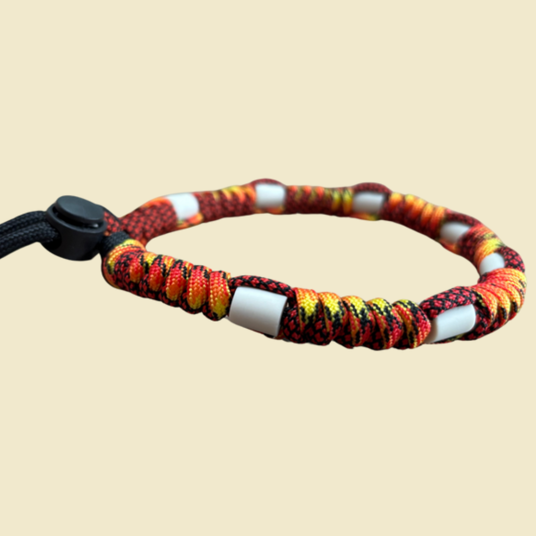 In elk bandje zitten EM-keramiekkralen. Tijdens het bakken krijgen die kralen een soort “superpower” mee: de frequentie van effectieve micro-organismen. Klinkt misschien gek, maar deze frequentie wordt in de omgeving afgegeven en helpt zo teken op afstand te houden. Zonder chemische troep!