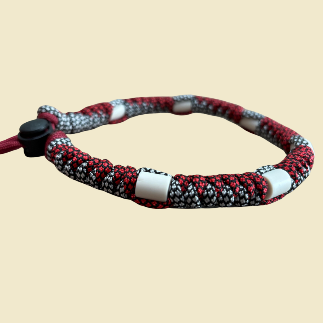 In elk bandje zitten EM-keramiekkralen. Tijdens het bakken krijgen die kralen een soort “superpower” mee: de frequentie van effectieve micro-organismen. Klinkt misschien gek, maar deze frequentie wordt in de omgeving afgegeven en helpt zo teken op afstand te houden. Zonder chemische troep!
