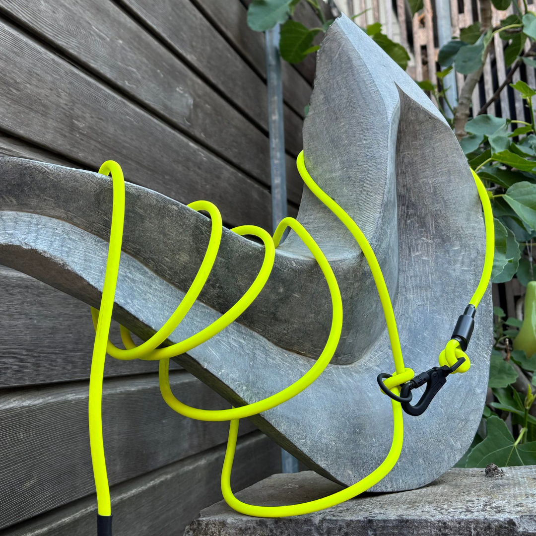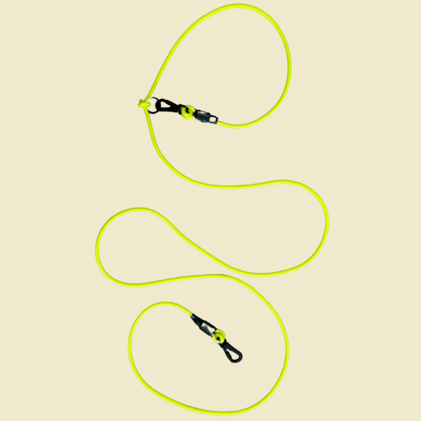 Onze lijnen zijn afgewerkt met een sterke bevestigingshaak (karabijnstijl of musketonclip, afhankelijk van de maat).